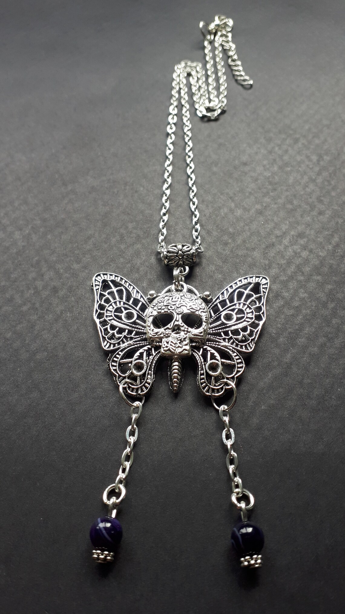 - Butterfly skull necklace sale