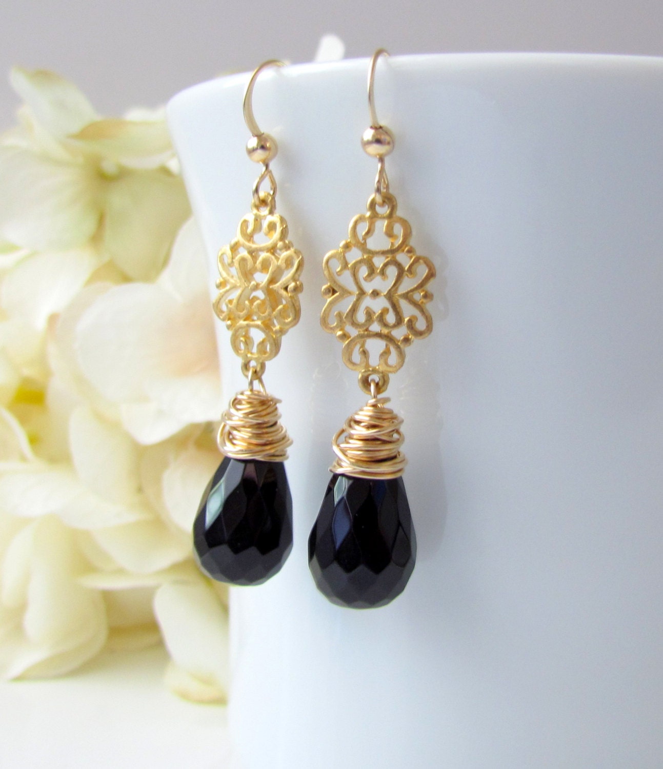 - Single black stone earrings in gold