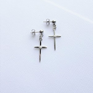 Lesilvestone cross earrings Clearance, 14K Gold Cross Earrings Men / Women With Real Diamond Dangle - Etsy Clearance