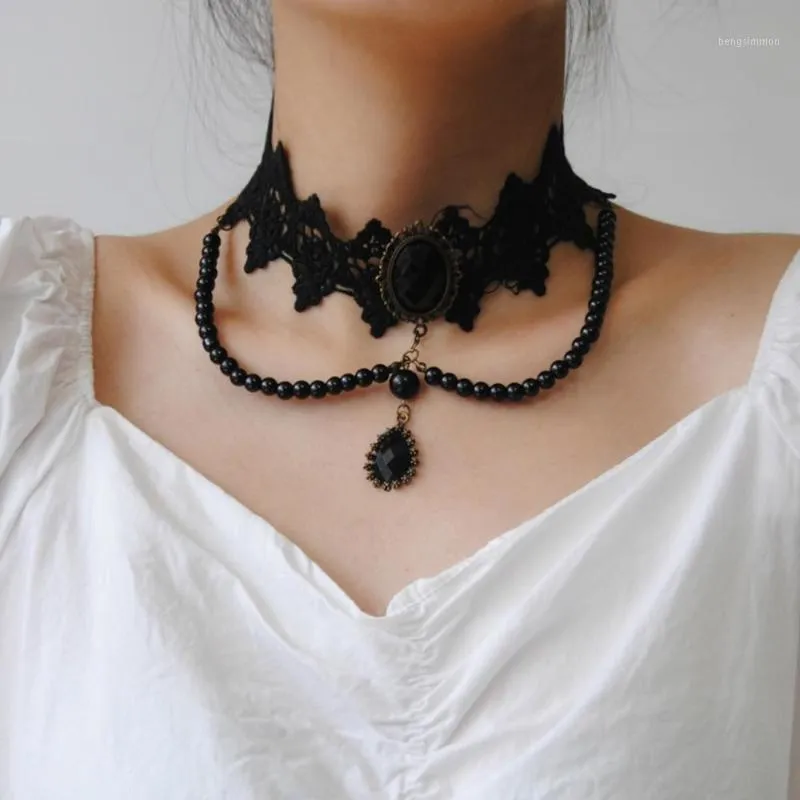 Choker 2021 Clearance, Chokers 2021 Fashion Gothic Victorian Crystal Tassel Tattoo Choker Necklace Black Beads Lace Clearance