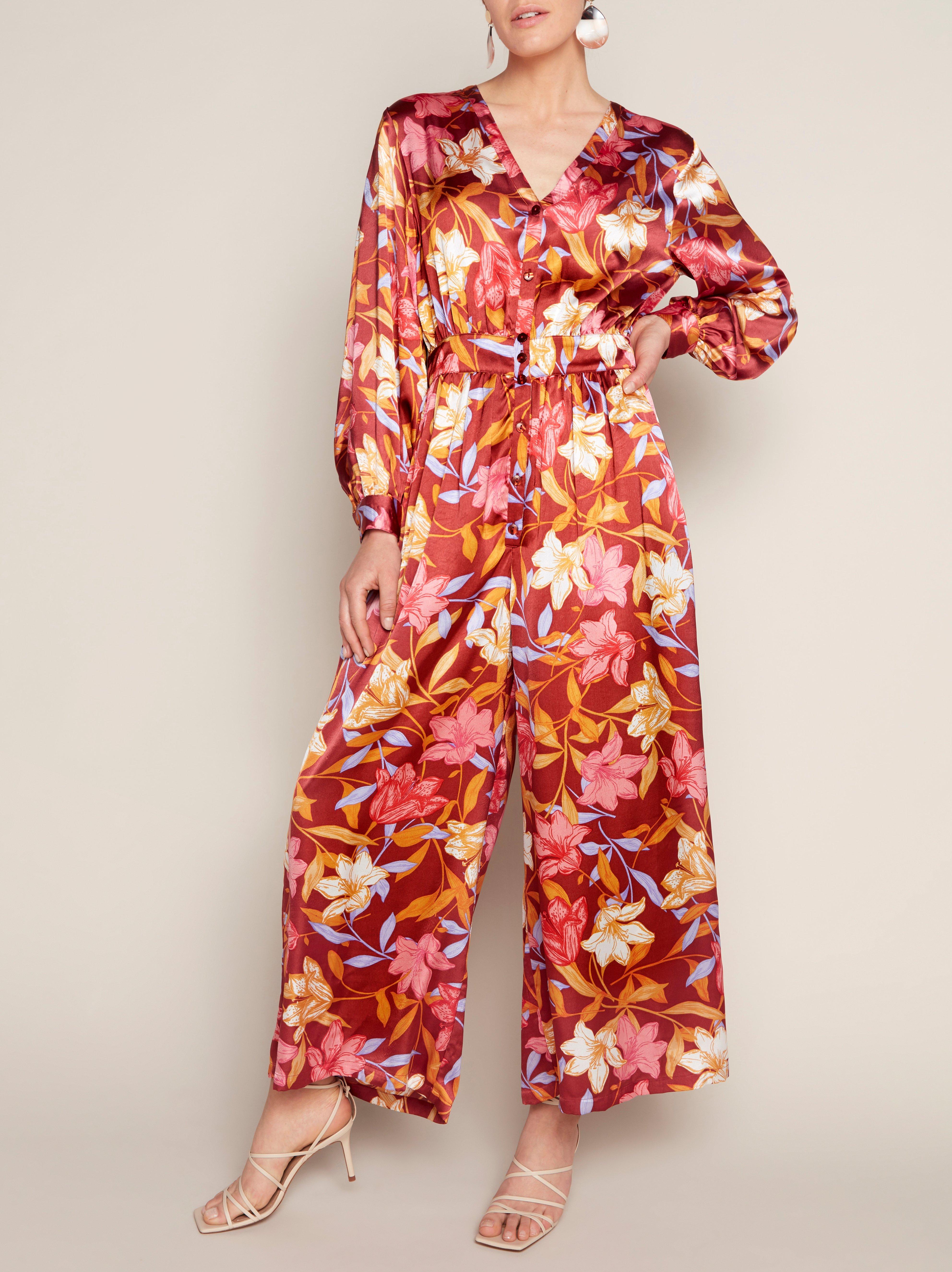 - Red patterned jumpsuit clearance