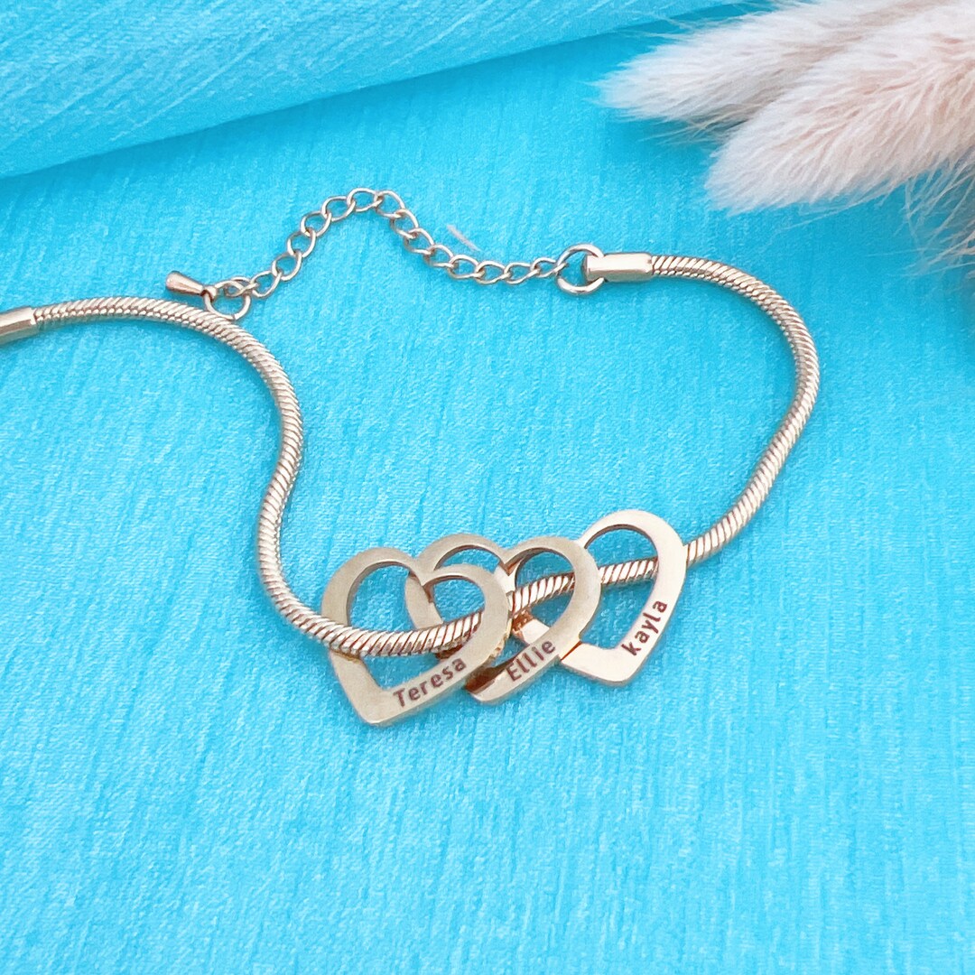 Personalized heart bracelet Clearance, Personalized Heart Bracelet Custom Engraved Heart Name Bracelet Mother Bracelet Gift for Her Clearance