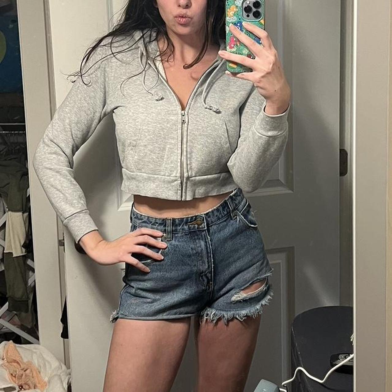 - Grey cropped zip up hoodie brandy melville sold