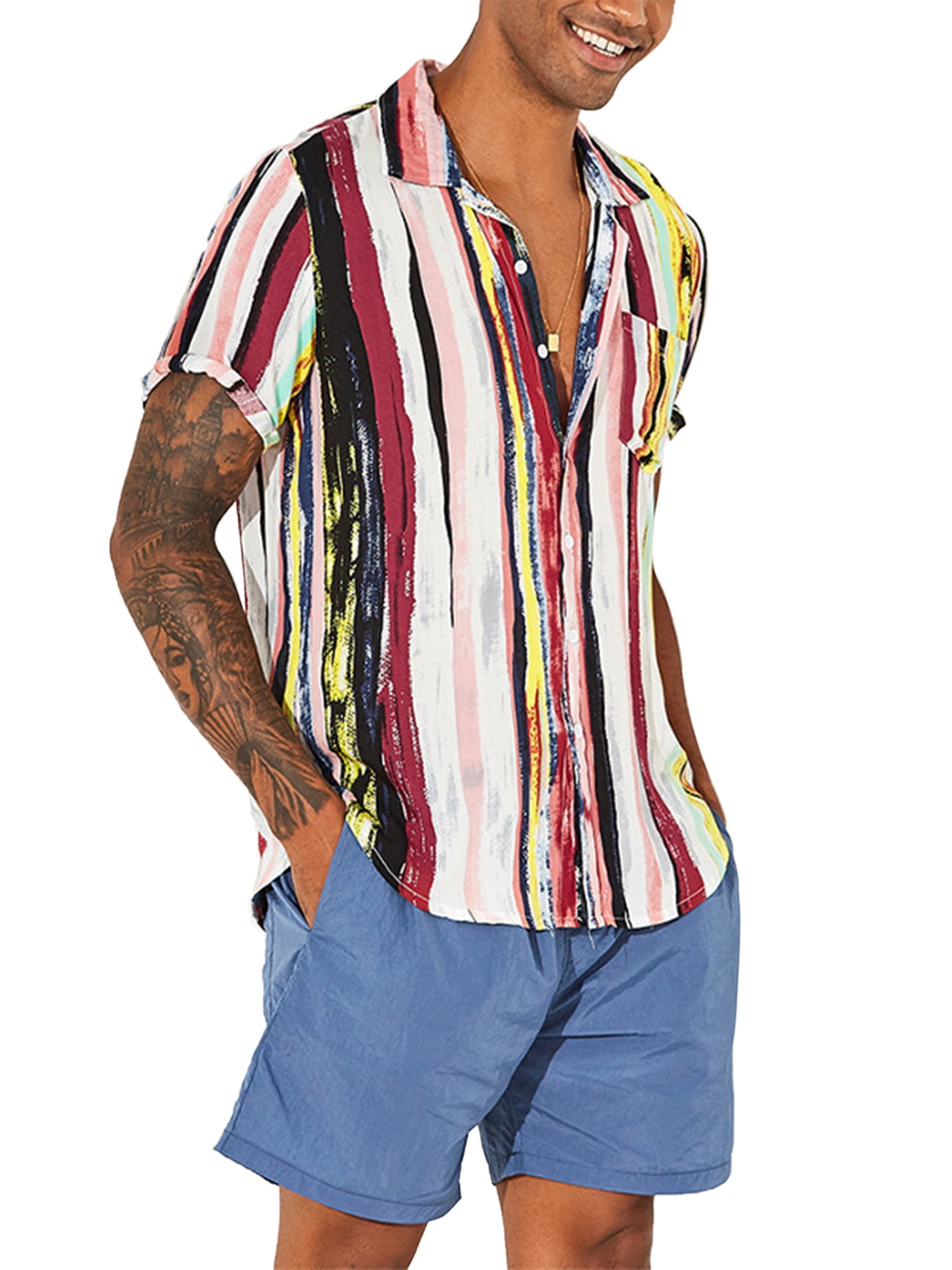 Plus size beach shirts Clearance, Lapel Shirts Summer Short Sleeve Clearance