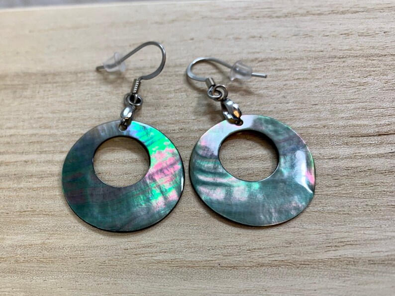 Round shell earrings Clearance, Round Shell Earrings Black Lip Shell Earrings Round Loop | Etsy Clearance