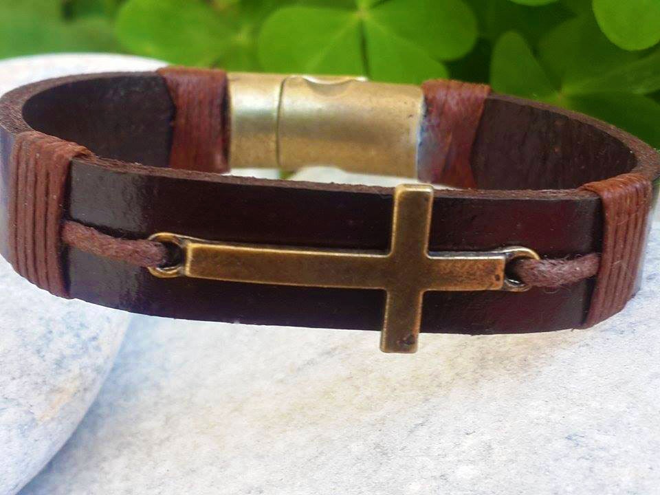 - Mens leather cross bracelet shop