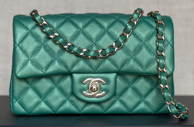 Chanel green handbag Clearance, BNIB Authentic CHANEL Iridescent Green Lambskin Gold Hardware Mini Flap Bag | eBay Clearance