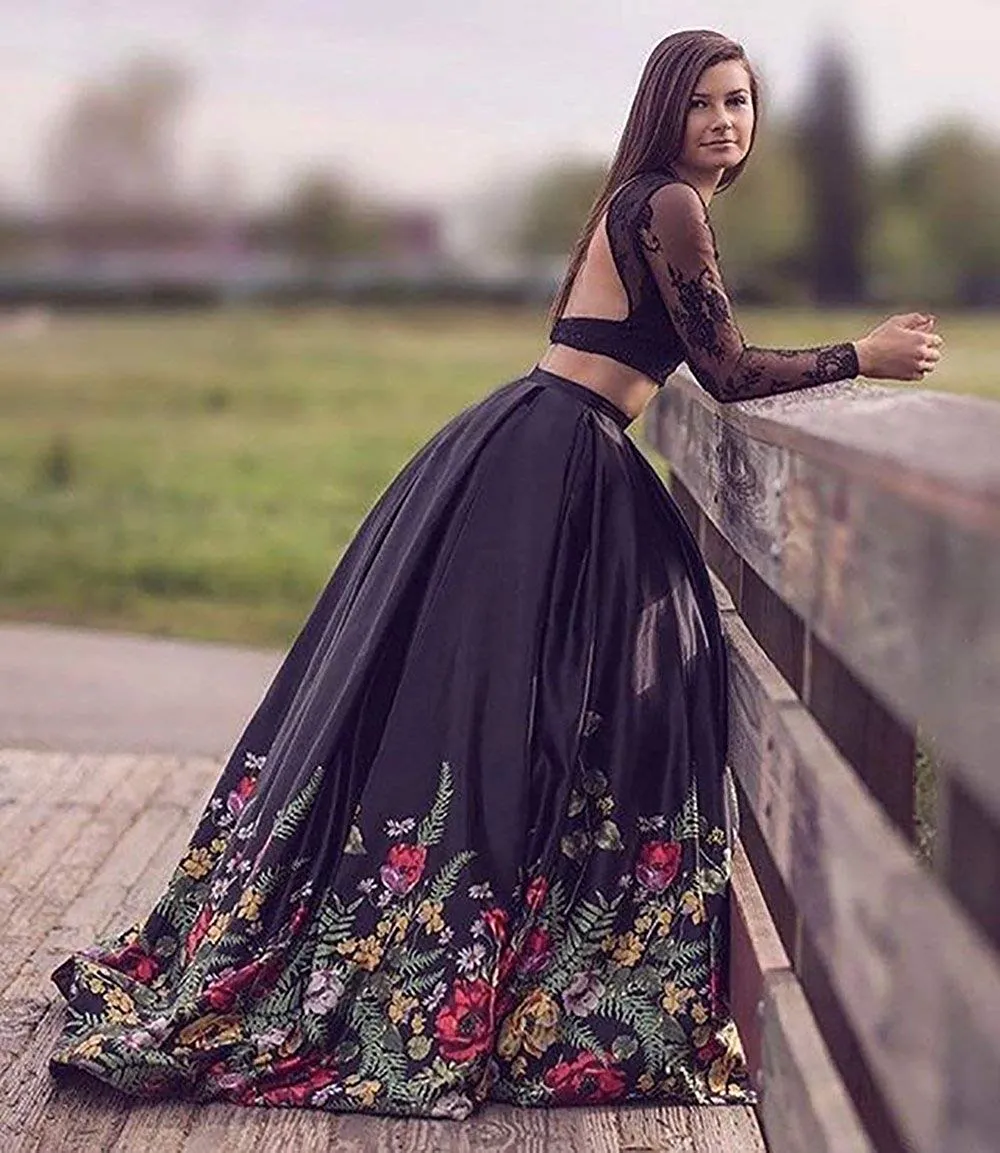 2 piece dresses Clearance, Two Piece Prom Dresses Floral Print Crop Top Long Sleeve Evening Dress Lace 8th Grade Graduation Celebrity Dresses From Queenfashion, $97.69 | DHgate.Com Clearance