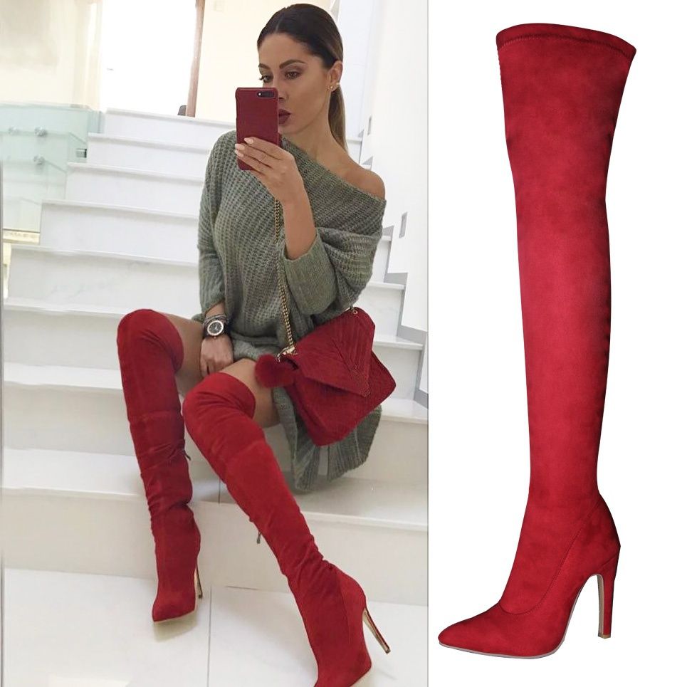 - Red knee high boots uk free shipping