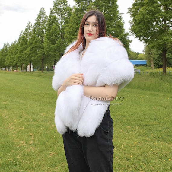 White fox fur cape Clearance, White Fox Fur Cape Coat With Lamb Leather Details With Side - Etsy Clearance