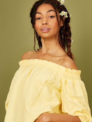 Yellow bardot top Clearance, Yellow Cotton Bardot Top | In The Style USA Clearance
