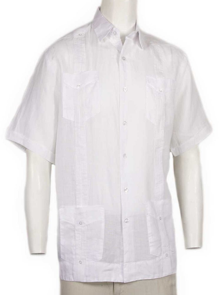 Cuban 4 pocket shirts Clearance, Havana Postale Guayabera Men's Cuban 4 Pocket Shirt Short Sleeve Cool Linen, Size: Medium, White Clearance