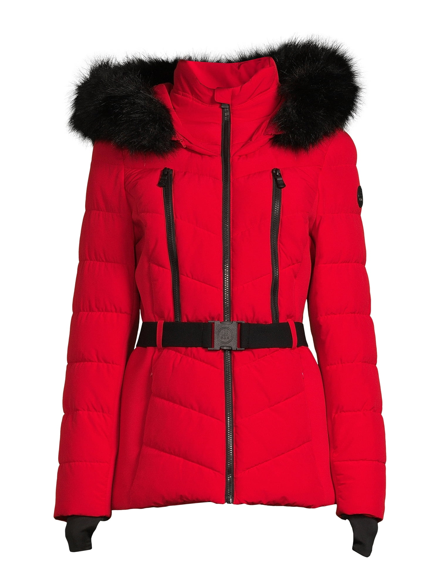 - Fashion union puffer coat with faux fur trim and belt clearance