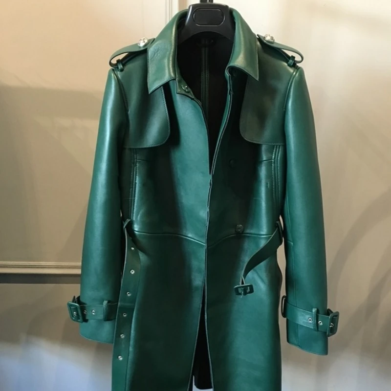 - Green leather jacket long free shipping