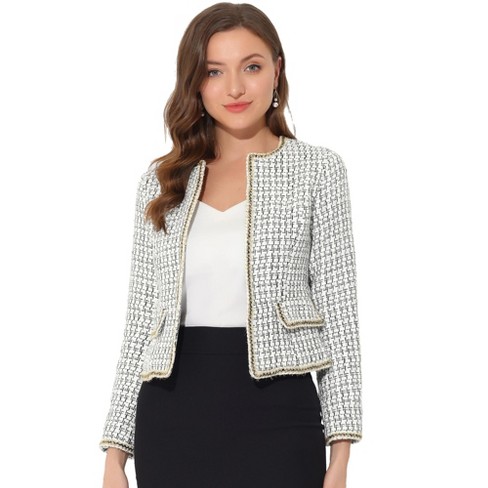 Small tweed jacket Clearance, Allegra K Women's Long Sleeve Open Front Work Office Short Plaid Tweed Blazer White Small : Target Clearance