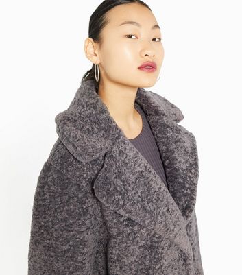 - Dark grey teddy faux fur long coat clearance