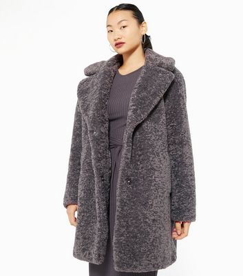 Dark grey teddy faux fur long coat Clearance, Tall Dark Grey Teddy Faux Fur Long Coat | New Look Clearance