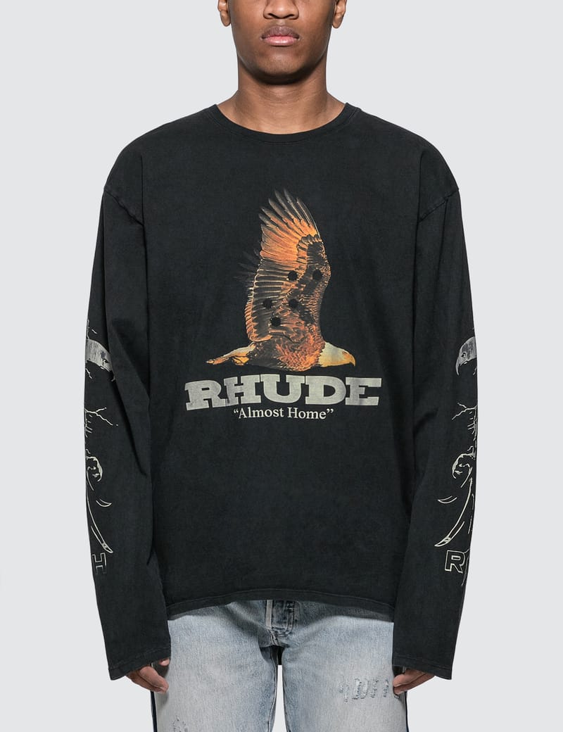 Rhude long sleeve t shirt Clearance, Rhude Black Eagle Moto Long Sleeve T Clearance