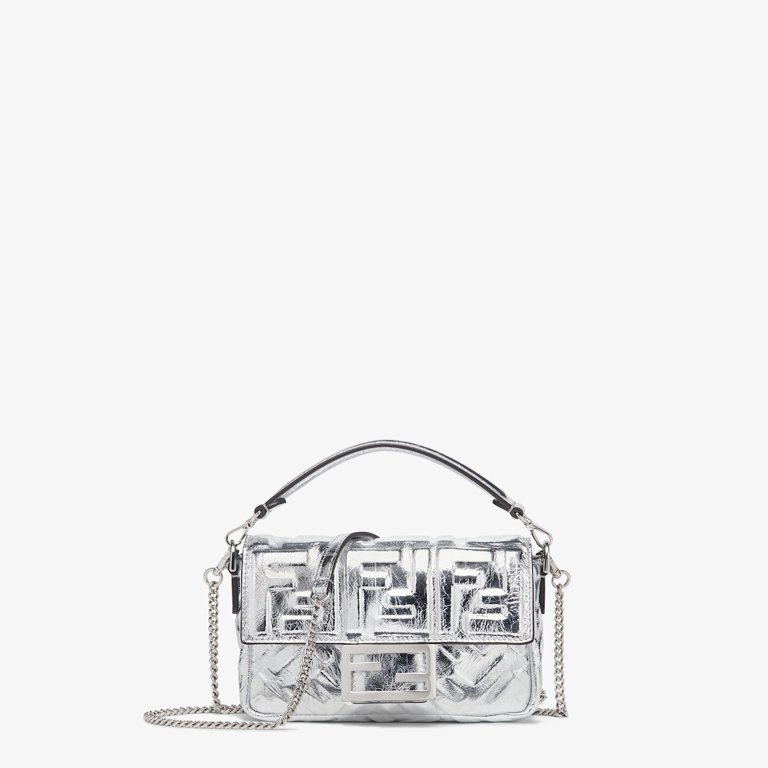 Fendi silver purse Clearance, Baguette Mini - Silver leather bag with crystal FF motif | Fendi Clearance
