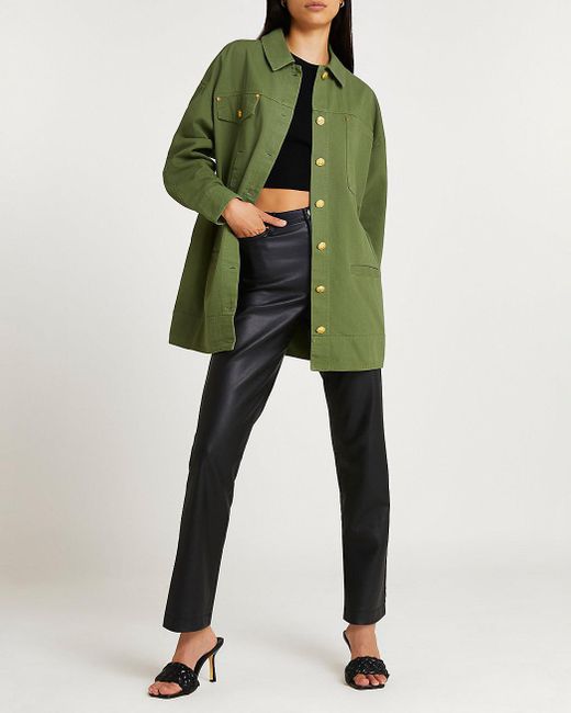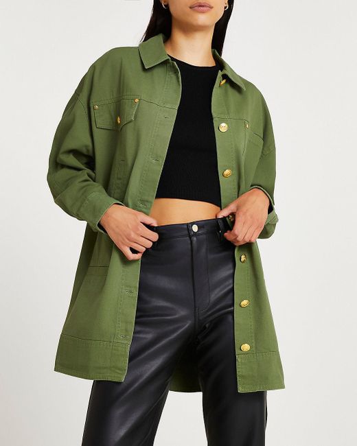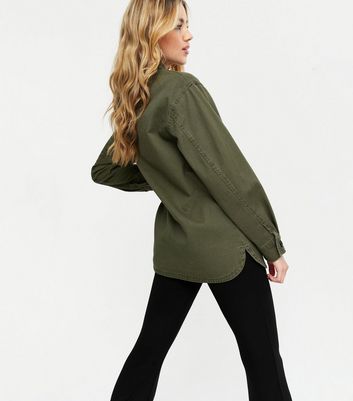 - Khaki twill oversized shacket outlet