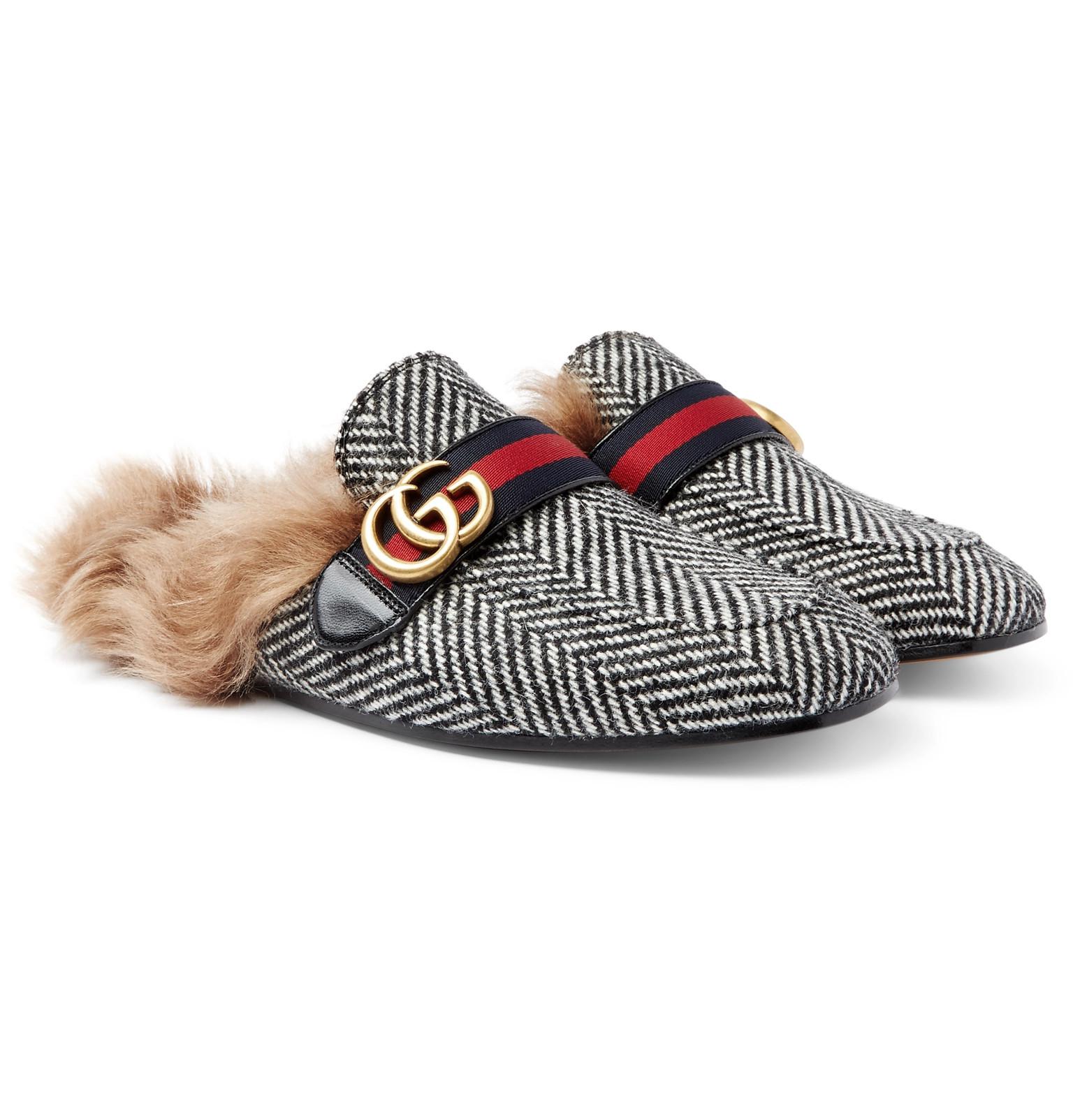 Wool lined loafers Clearance, Gucci Princetown GG Fur-lined Wool Clearance