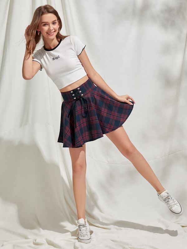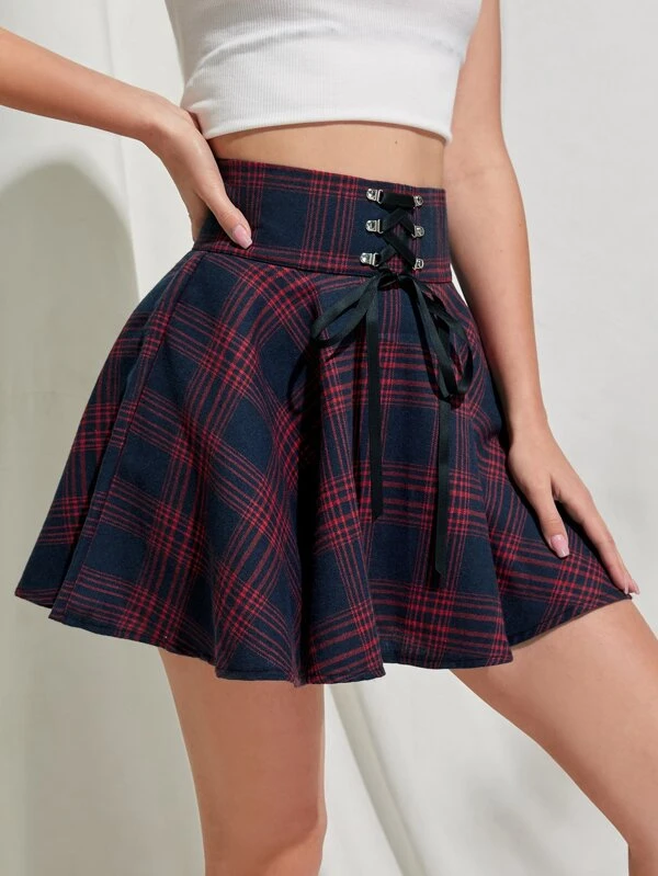 - Shopping Christmas tartan lace up skater skirt