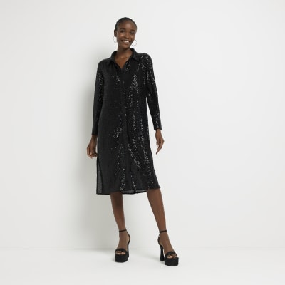 - Sequin long sleeve shirt dress