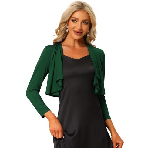 Emerald green bolero jacket Clearance, Allegra K Women's Elegant Open Front Drape 3/4 Sleeve Crop Bolero Shrug Dark Green X-small : Target Clearance