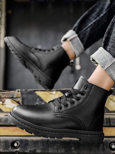 Shein men boots Clearance, Men Lug Sole Lace-up Front Combat Boots Clearance