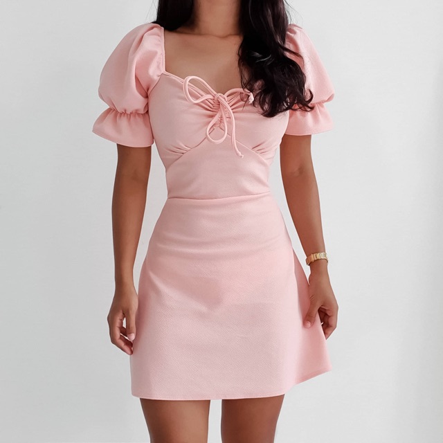 Pink dress shopee Clearance, Pastel Pink Dress with Puff Sleeves Clearance