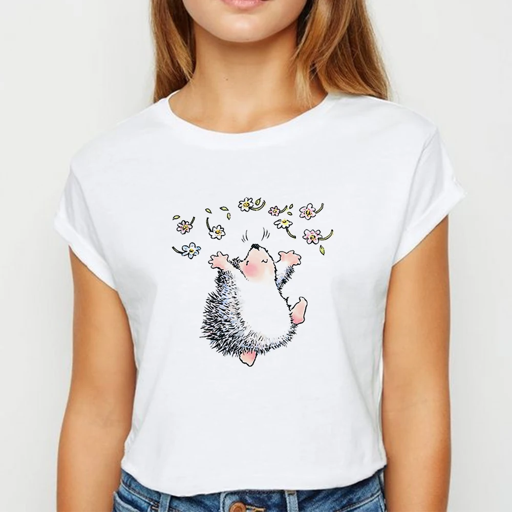 Cream tshirt women Clearance, New T shirt Women Hedgehog eating ice Clearance