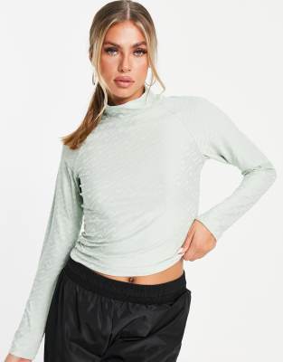 Nike mock long sleeve top green Clearance, Nike Icon Clash All Over Logo Print Crop Mock-Neck Long Sleeve Top in Dusty Green Clearance