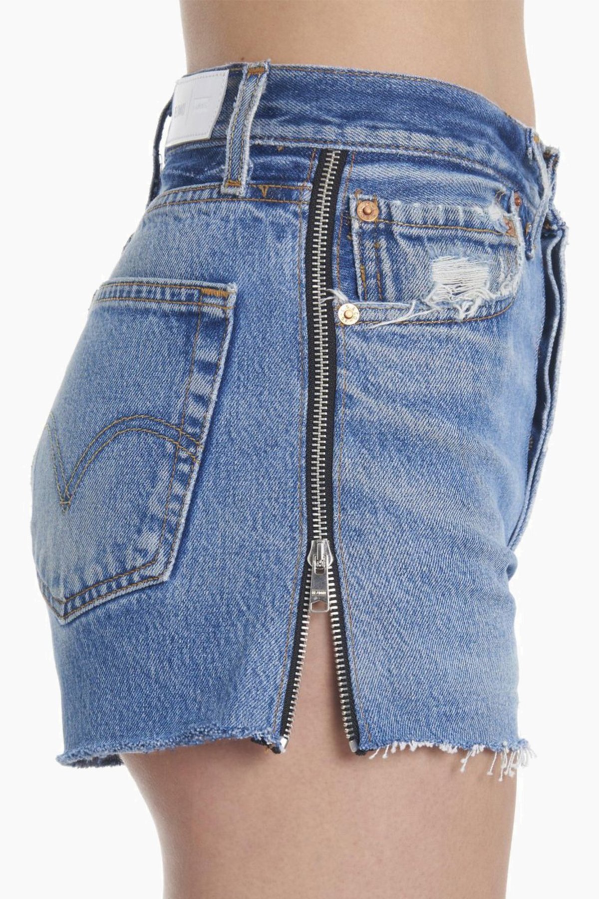 - Jean shorts with zipper on side sale