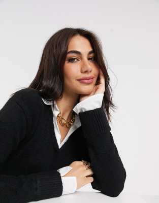 Layered jumper shirt Clearance, Grey Layered Look Jumper Shirt Clearance