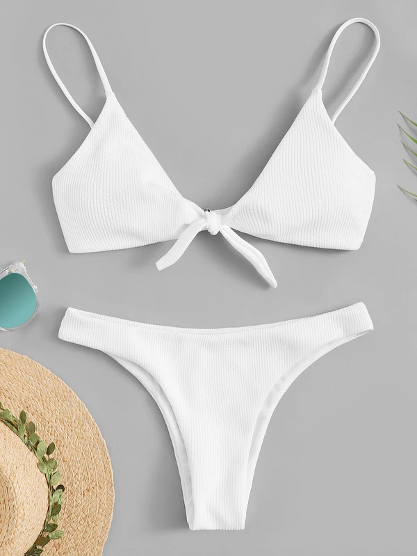 White swimsuit shein Clearance, Ribbed Tie Front Bikini Swimsuit Clearance