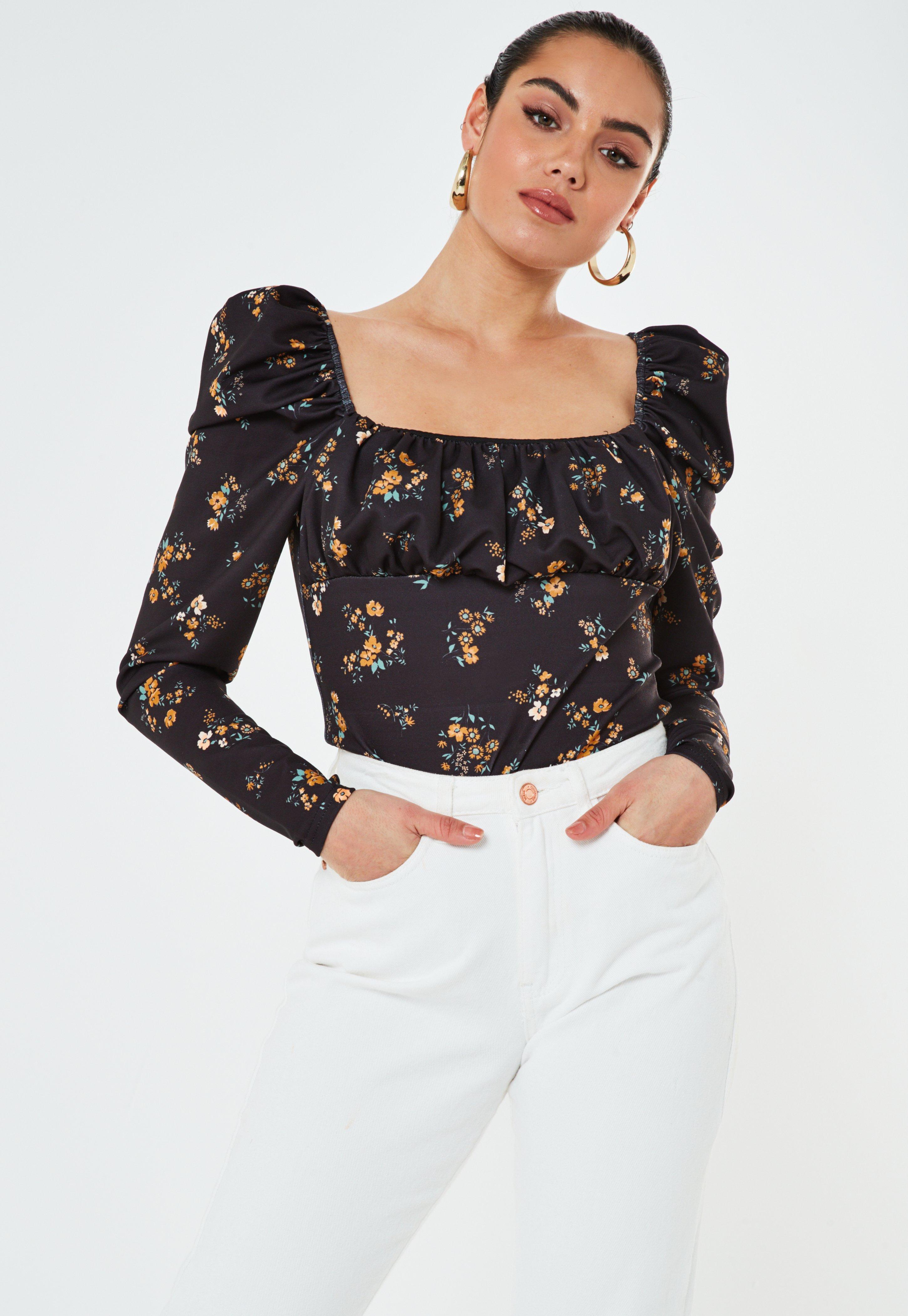 - Black floral puff sleeve top shop