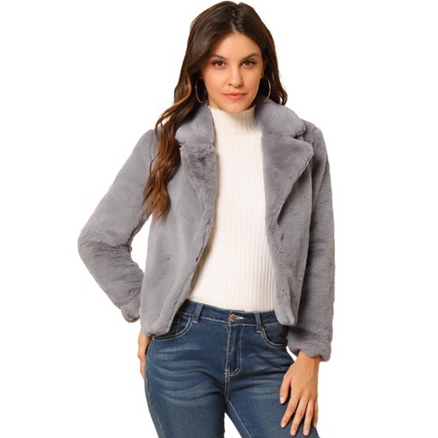 - Cropped grey fur jacket clearance