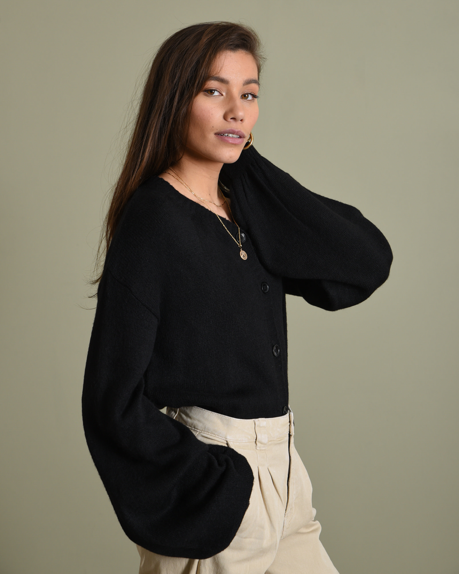 - Short chunky black cardigan