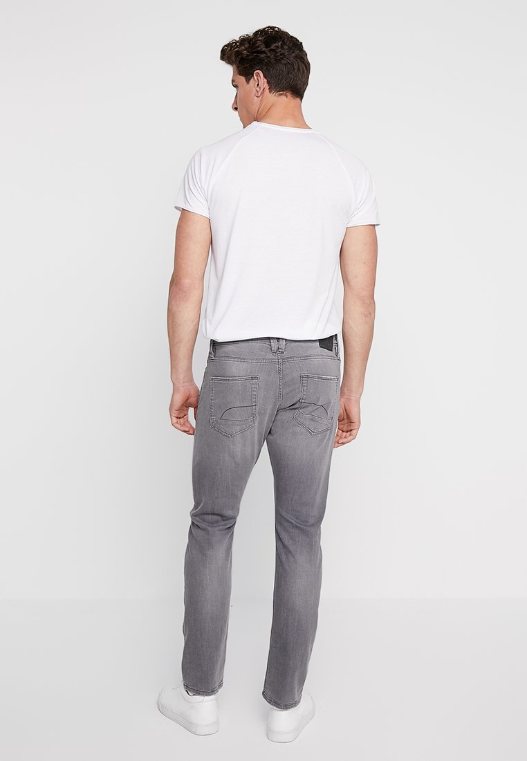 - Light wash slim straight jeans