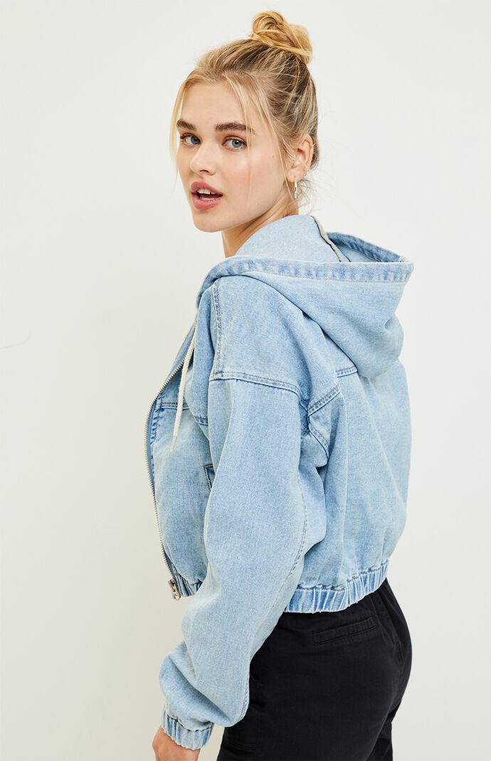 - Hooded denim bomber jacket sale