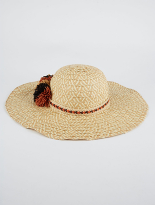 Asda straw hat Clearance, Brown Pom Pom Woven Straw Hat | Women Clearance