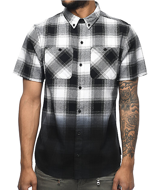 Black and white plaid shirt short sleeve Clearance, Dip Dye Short Sleeve Flannel Shirt | Zumiez Clearance