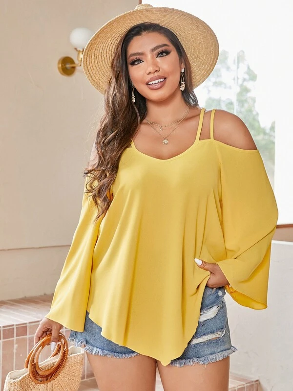 - Yellow cold shoulder blouse free shipping
