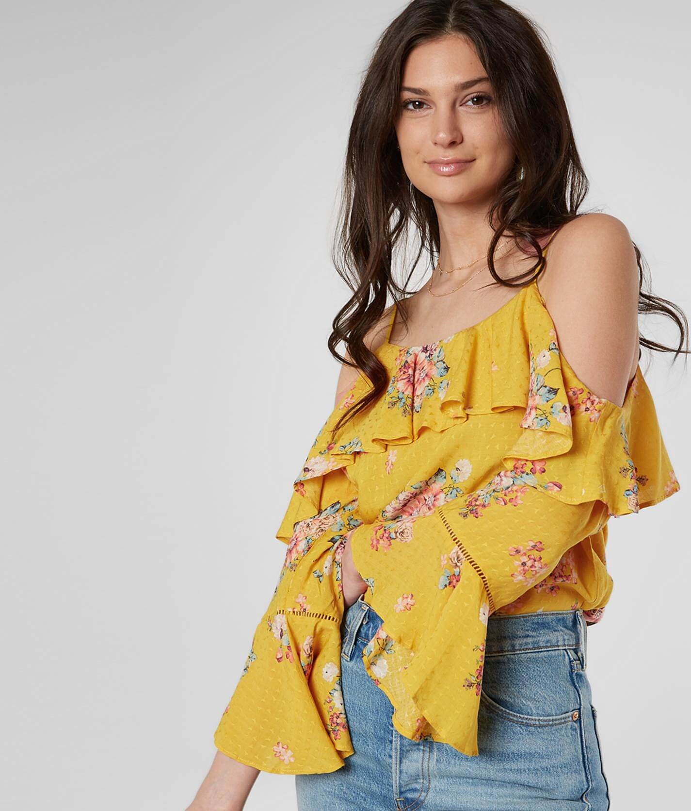 - Yellow cold shoulder blouse clearance