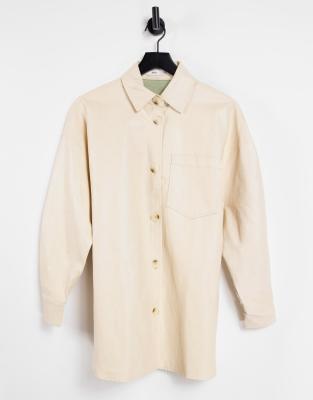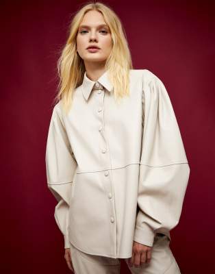 Leather shirt cream Clearance, Mango faux leather overshirt in cream Clearance