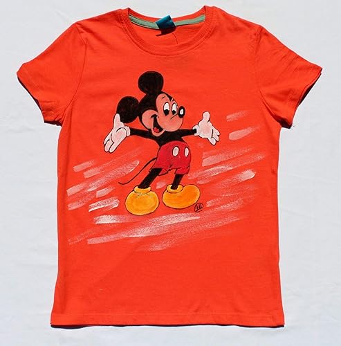 Tshirt mickey Clearance, Hand Painted Mickey Mouse Orange Clearance