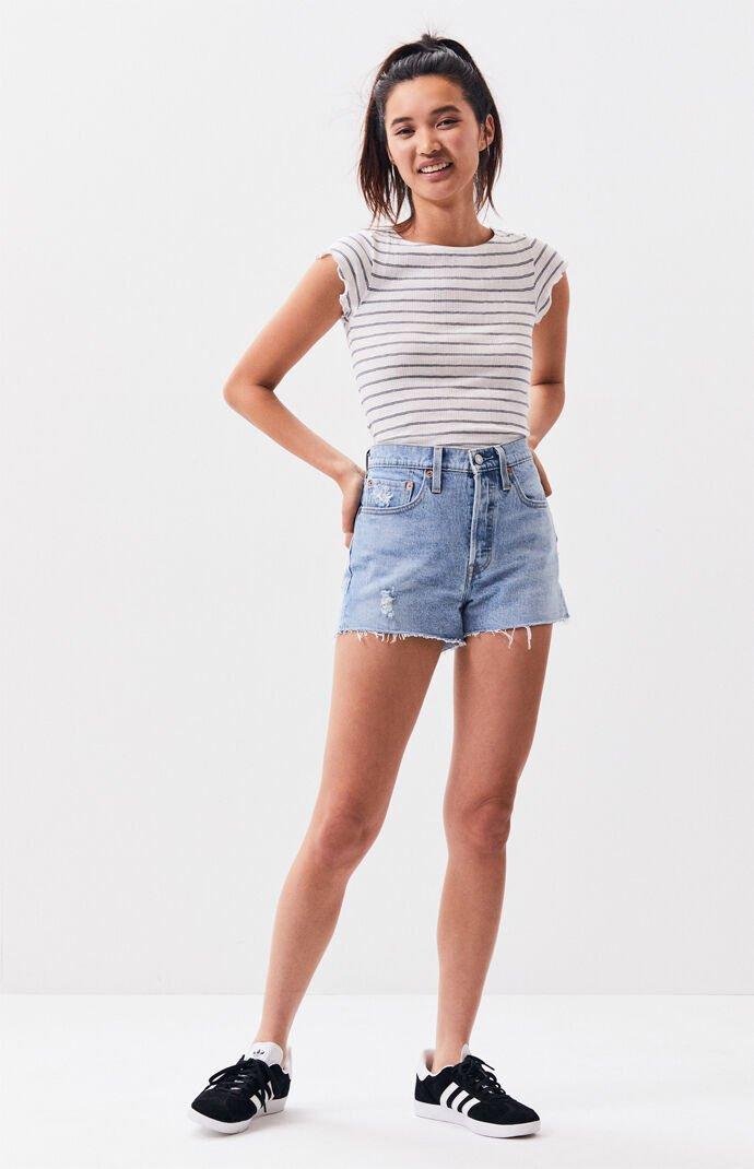 - Levi's tango blue 501 high waisted denim shorts sale online