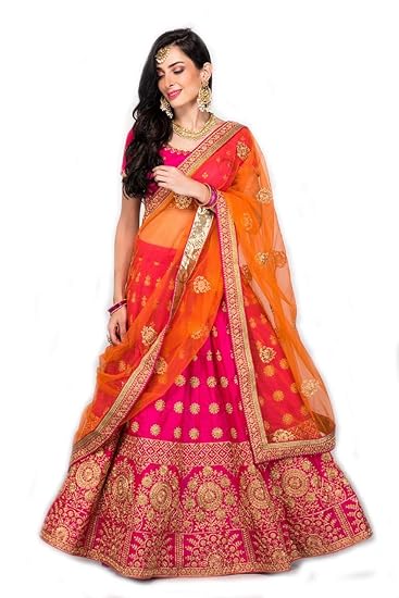 - Pink lehenga with orange dupatta free shipping