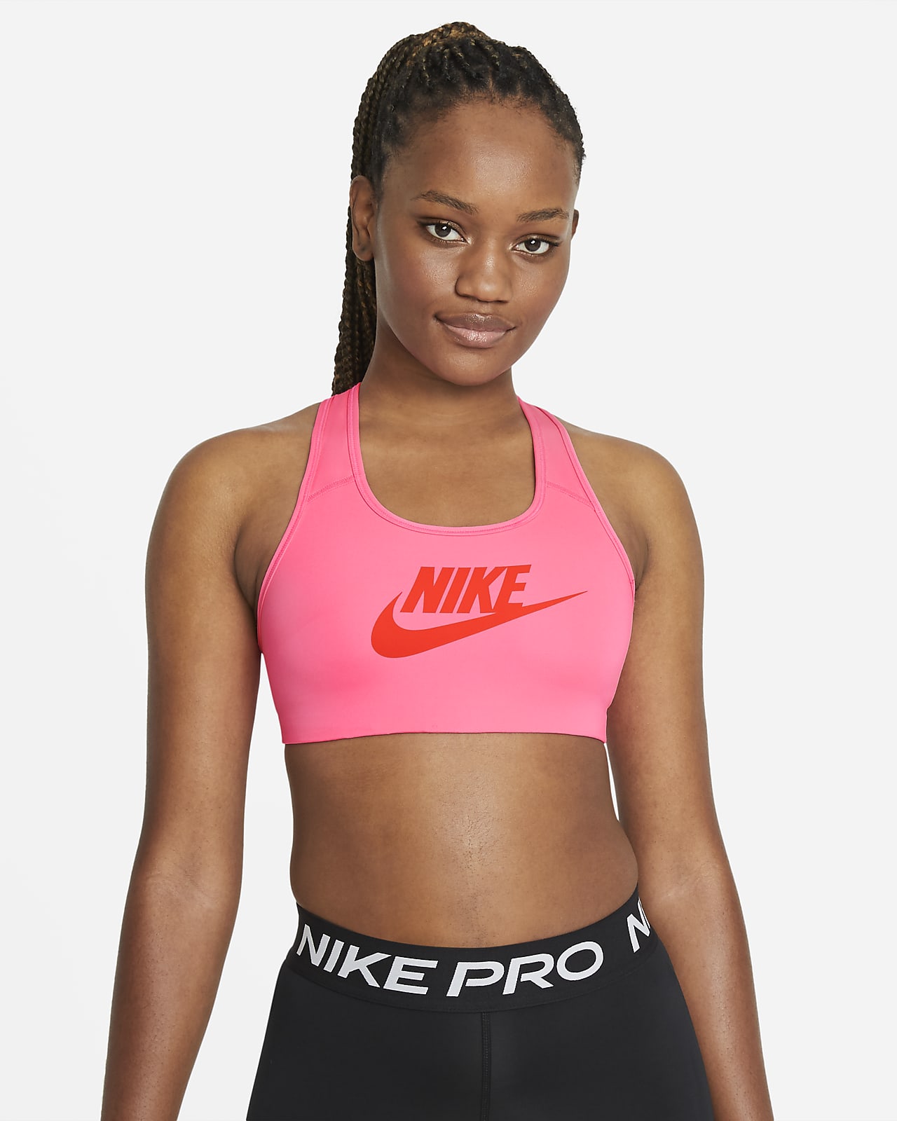 Nike sportklamotten Clearance, Nike Dri-FIT Swoosh ungepolsterter Grafik-Sport-BH mit mittlerem Halt für Damen. Nike LU Clearance