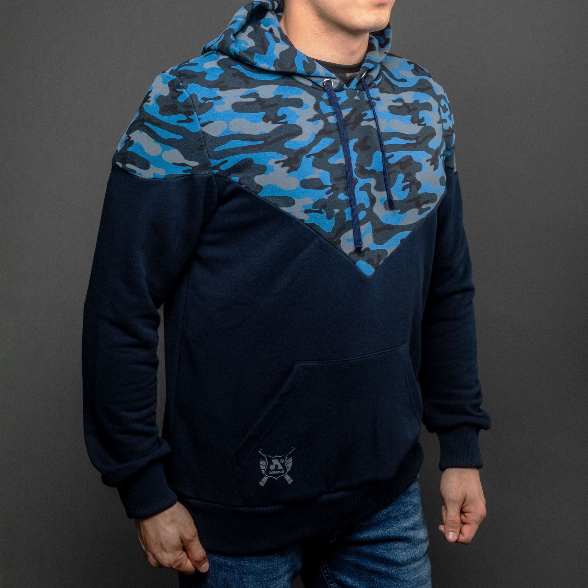 Ascend knit pullover hoodie Clearance, Arsenal Blue Camo Cotton-Poly Relaxed Fit Ascend Pullover Hoodie at K-Var Clearance